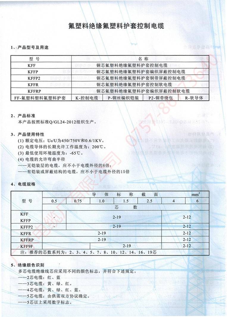 氟塑料绝缘氟塑料护套控制电缆